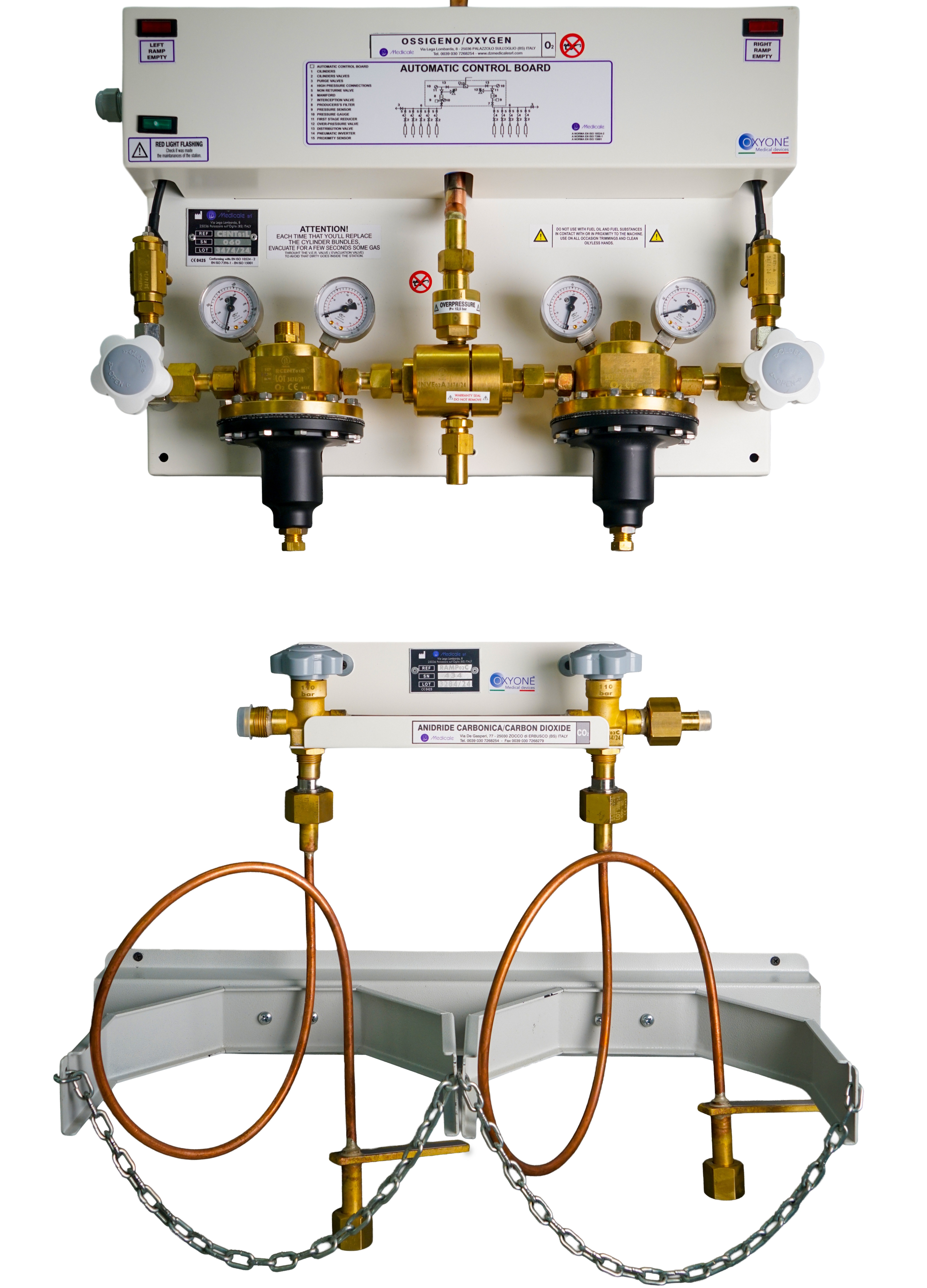 Notre centrale de régulation comprend un ensemble double détente, une structure en acier inoxydable peint et un système d'inversion automatique. Cet équipement essentiel garantit une régulation précise et sécurisée des gaz médicaux dans tous les établissements de santé.